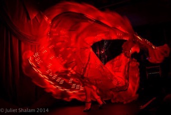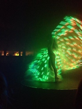 When using technology in my work, I like to have a reason, a way of using it so it enhances the concept of my work rather than being just a gimmick. Every time I explore something new I have to create a new setting for it, not just re-tread ground I've already built on. This act actually began with a failure - the end of a two year attempt to create sequenced images floating in the air using only the traces left by my body. The Human Hummingbird. Sadly, despite producing an effect that was only useful for enhancing an existing performance, nature and technology are currently against me.